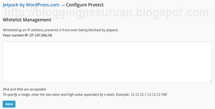 alamat IP mencegah dari yang diblokir oleh Jetpack. Cukup klik pada 'Configure' dari 'Protect' pilihan.